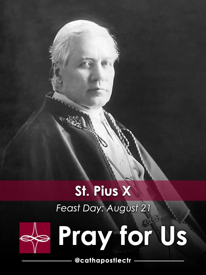 St. Pius X was Pope from 1903 to 1914. Although he was born into poverty, he excelled as a student and continued his studies through his ordination to the priesthood in 1858. He eventually became a professor of theology in a seminary and was named Bishop of Mantua in 1884. In 1893, Pope Leo XIII named him a cardinal and Patriarch of Venice, giving him this position for his devotion to the social welfare of everyone in his archdiocese. When he was elected Pope in 1903, Pius X took as a motto, "to restore all things in Christ." Throughout his pontificate, he promoted daily reception of communion, lowered the age of first communion from twelve to seven, promoted the use of Gregorian chant, and published the first Code of Canon Law. Just before his death in 1914, he approved plans to build what would become the Basilica of the National Shrine of the Immaculate Conception in Washington, DC. Pius X was beatified in 1951 and canonized in 1954, both times by Pope Pius XII.